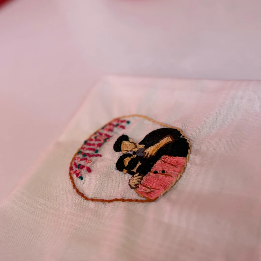 Our artisans bring the design to life stitch by stitch, using premium threads and materials chosen for lasting quality.